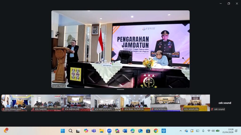 Jayawijaya, 21 April 2026 – Kejaksaan Negeri Jayawijaya mengikuti kegiatan Zoom Pengarahan Jaksa Agung Muda Perdata dan Tata Usaha Negara (JAMDATUN) Kejaksaan Republik Indonesia, Dr. R. Narendra Jatna, S.H., LL.M., yang dilaksanakan secara virtual dan diikuti oleh seluruh Kejaksaan Negeri se-wilayah Papua.